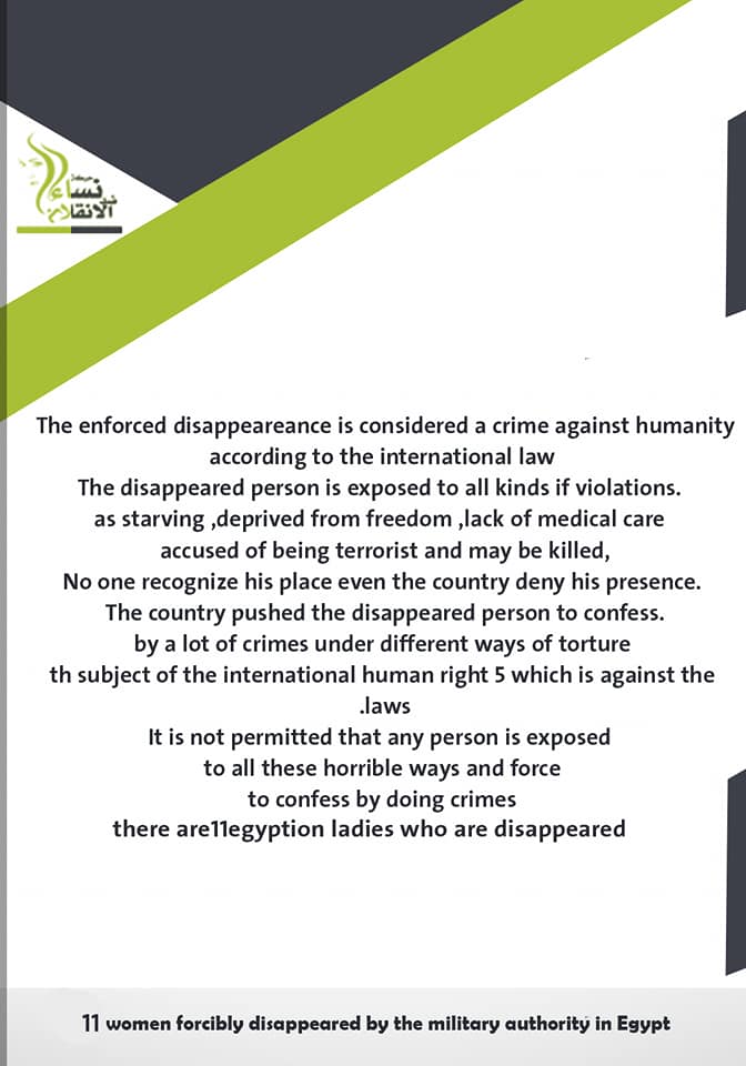 “نساء ضد الانقلاب” تستنكر استمرار الإخفاء لـ10 سيدات وفتيات