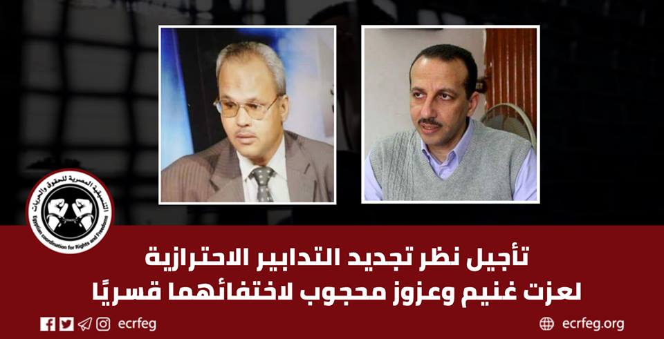 أجَّلت محكمة جنايات القاهرة، برئاسة قاضي العسكر حسن فريد، اليوم الثلاثاء، نظر تجديد التدابير الاحترازية للمحامي عزت غنيم، المدير التنفيذي للتنسيقية المصرية للحقوق والحريات، والمحامي عزوز محجوب، لجلسة ...