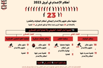 التعليقات على 23 حكما بالإعدام وإحالة أوارق 20 آخرين للمفتي خلال أبريل الماضي مغلقة