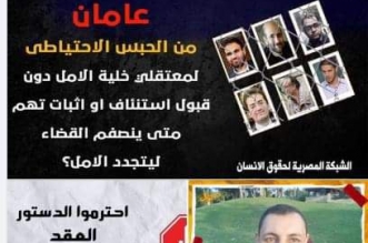دعت "الشبكة المصرية لحقوق الإنسان" إلى الإفراج الفوري عن معتقلي ما يعرف بـ"خلية الأمل"، وهي إحدى القضايا الملفقة التي تضم عددا كبيرا من المعتقلين ،ينتمون لاتجاهات فكرية وسياسية ...