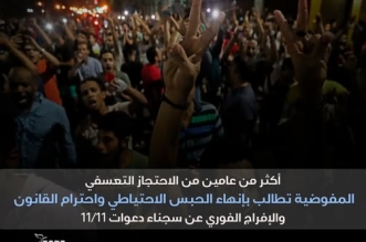 تجاوز حبسهم الاحتياطي العامين ..المفوضية المصرية تطالب بالإفراج عن 1500 شخص بينهم 36 سيدة و20 طفلًا