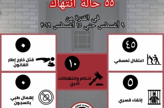 بالأرقام.. 55 انتهاكًا لحقوق الإنسان في أسبوع