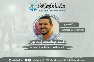 استغاثات متتالية وجهتها أسرة الشاب “أحمد عبد المنعم إسماعيل مبارك”، يبلغ من العمر 32 عاما، بكالوريوس صيدلة، للكشف عن مكان احتجازه القسري، منذ اعتقاله التعسفي يوم 10 نوفمبر ...