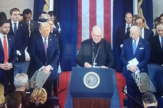 “أبانا الذي في السماوات لنبارك الأمة التي يقودها الرب” ثم قس وصلاة وتذكير بنبي الله موسى وشعبه والخروج من مصر، كل للحاضرين وقوف في مبنى الكابيتول في ...
