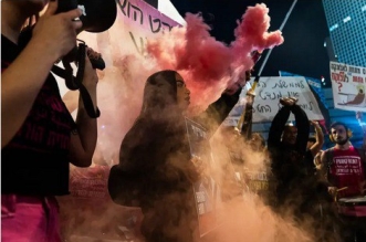 عائلات الرهائن تواصل الاحتجاجات أمام منزل نتنياهو ويطلقون قنبلتين ضوئيتين عليه