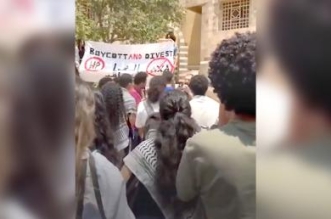 طلاب الجامعة الأميركية بالقاهرةيتظاهرون رفضا للعدوان الصهيونى على غزة وبيروت