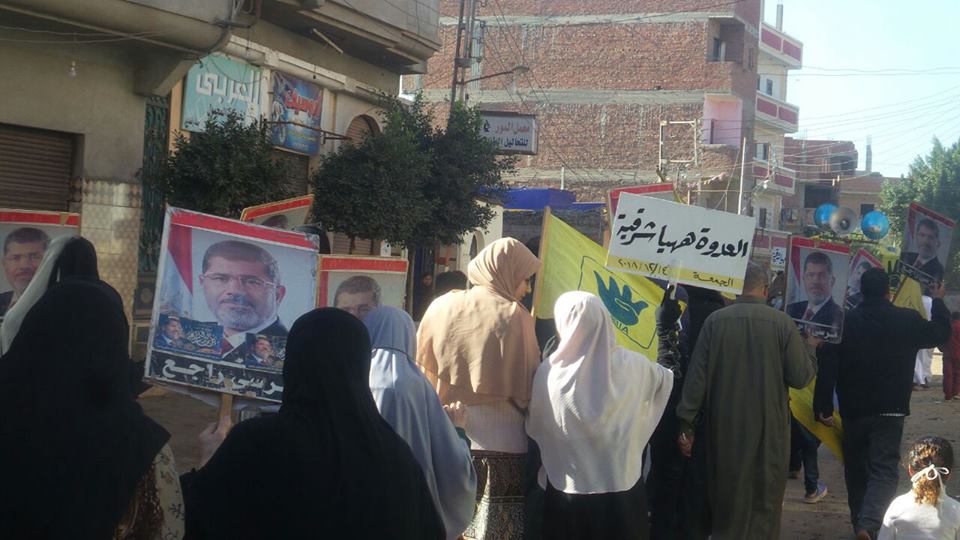 تقدم عدد من أسر المعتقلين والشهداء المظاهرة التي انطلقت عقب صلاة الجمعة من قرية العدوة، مسقط رأس الرئيس محمد مرسى التابعة لمركز ههيا في الشرقية، تندد بجرائم العسكر ...