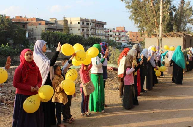 الغربية .. “السنطة” تجدد رفضها للانقلاب بسلسلة بشرية