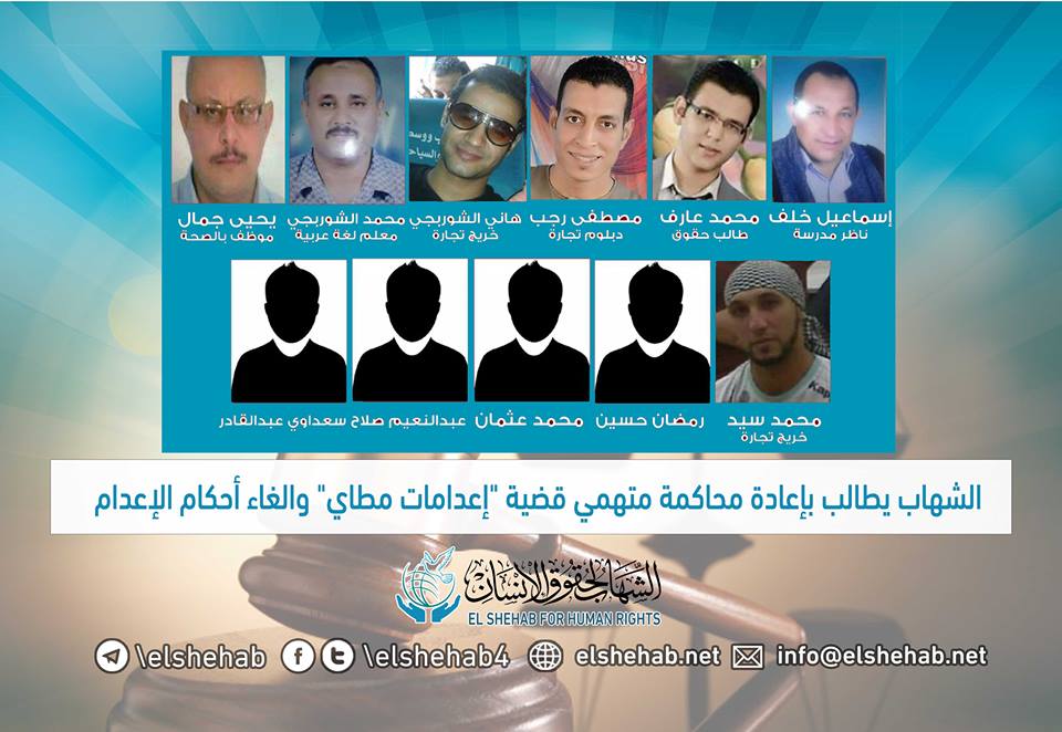 طالب مركز الشهاب لحقوق الإنسان بإعادة محاكمة أبناء مركز مطاي بالمنيا، والصادر بحقهم قرارات بالإعدام، مطالبا محكمة النقض بقبول الدعوى وإعادة المحاكمات أمام دائرة أخرى، مع توفير شروط ...