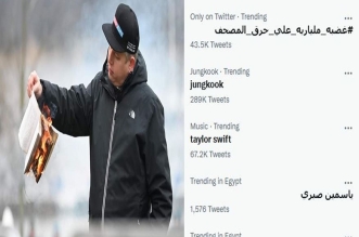 تصدر هاشتاج #غضبة_مليارية_على_حرق_المصحف ترند البلدان العربية في موجة غضب عارمة بعد إحراق المصحف الشريف أمام السفارة التركية في ستوكهولم تحت إطار ما يزعم أنه "حرية التعبير" إضافة ...