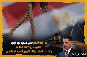 عبر تصميمات مساندة، دشن ناشطون هاشتاج #قضاة_الغدر عبر مواقع التواصل الاجتماعي، يستعرضون في أغلبها صور سامي محمود عبدالرحيم قاضي الانقلاب الفاسد الذي اعتلى منصة رئاسة محكمة جنايات بورسعيد ...