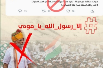 تصدر هاشتاج #إلا_رسول_الله_يا_مودي الأعلى تداولا في مصر بنحو 500 ألف تغريدة مع كلمات مفتاحية عن ذات القضية وهي "عُبّاد البقر" وهي إشارة إلى حزب بهاراتيا جناتا الهندوسي الحاكم ...